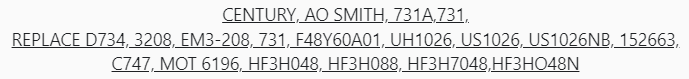 REPLACE D734, 3208, EM3-208, 731, F48Y60A01, UH1026, US1026, US1026NB, 152663, C747, MOT 6196, HF3H048, HF3H088, HF3H7048,HF3HO48N