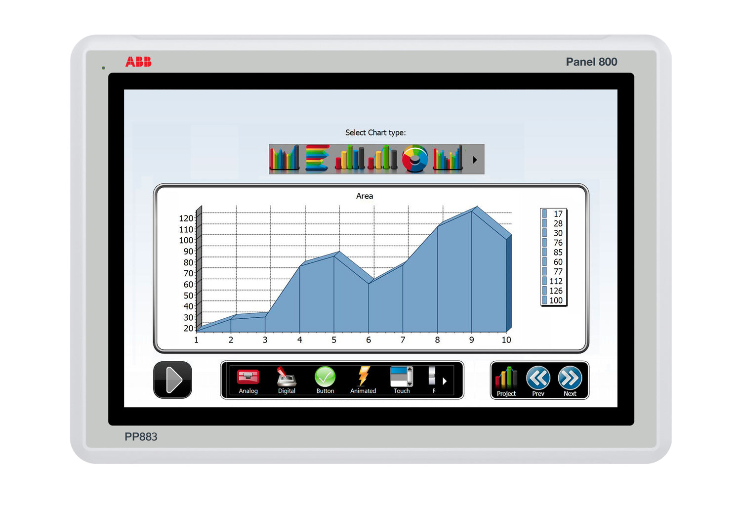 Touchscreen panels with brilliant TFT/LED display colors and multi-protocol connectivity. The standard range of Panel 800 comprises of PP875, PP881, PP883, PP886 and PP895 that are easy-to use HMI with comprehensive and integrated templates and libraries for every conceivable process you need. All standard panels are equipped with high-resolution graphics in TFT/LED display. Most models offer wide screen, high resolution display for increased efficiency and excellent operator interaction.