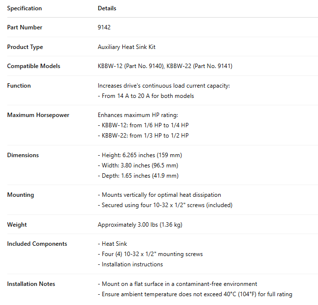 - KBBW-12: from 1/6 HP to 1/4 HP