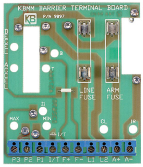 armature fuse holders (fuses supplied separately). The Barrier Terminal Board installs directly over the control by mating the Q-D