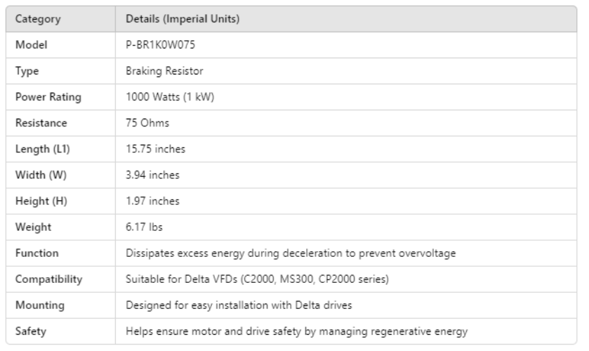 P-BR1K0W075, Braking Resistor 75 OHM 1000W