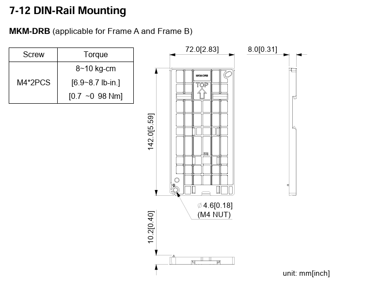 P-MKM-DRB, VFD-MH/MS300, DIN Rail Kit, Frame A or B