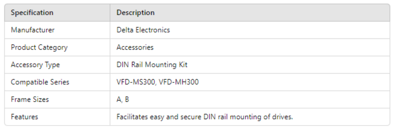 P-MKM-DRB, VFD-MH/MS300, DIN Rail Kit, Frame A or B is backordered and will ship as soon as it is back in stock.