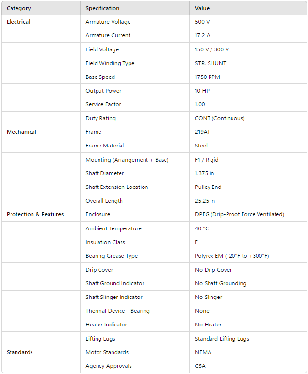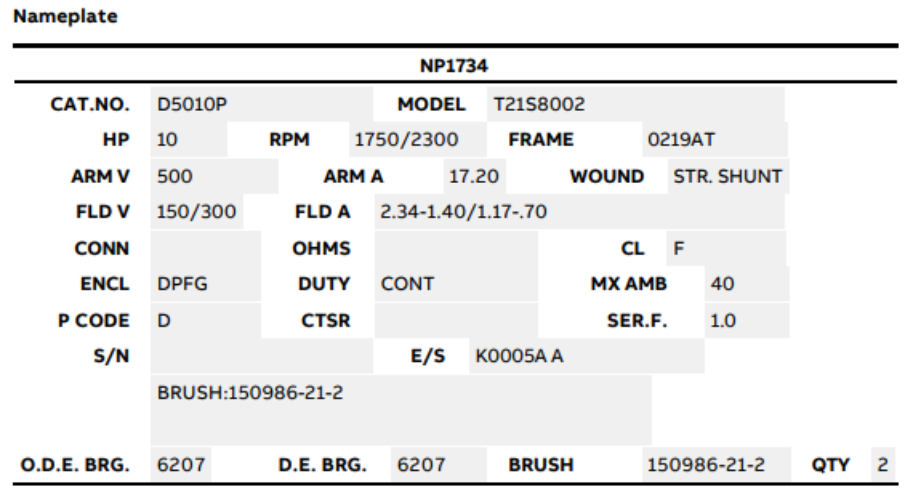D5010P, 10Hp, Baldor, 1750/2300 Rpm, Arm 500V, Field 150/300V, 0219AT, T21S8002, P21921480148
