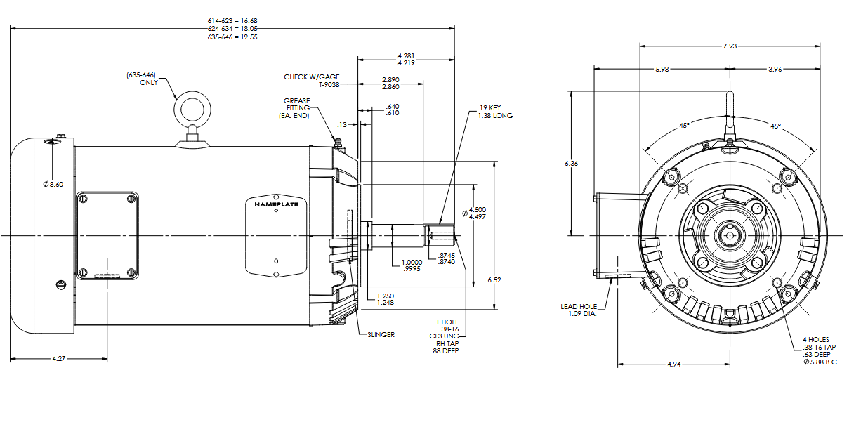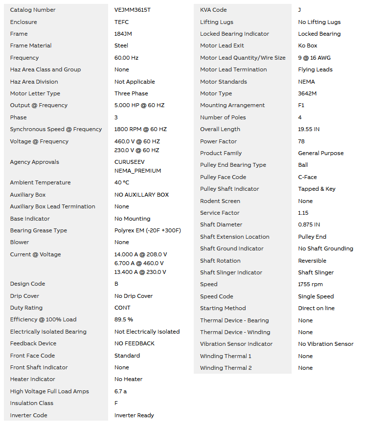 VEJMM3615T, Pump Motor, 5Hp, 1755 RPM, 230/460V, 3 Ph, 60 HZ, Frame 184JM, TEFC, 36S067Q032G1