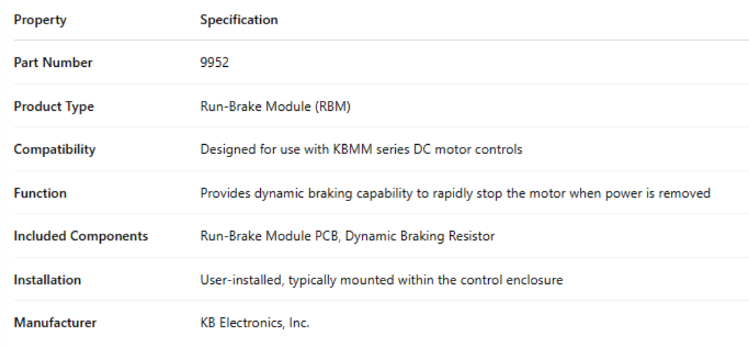 Included Components Run-Brake Module PCB, Dynamic Braking Resistor