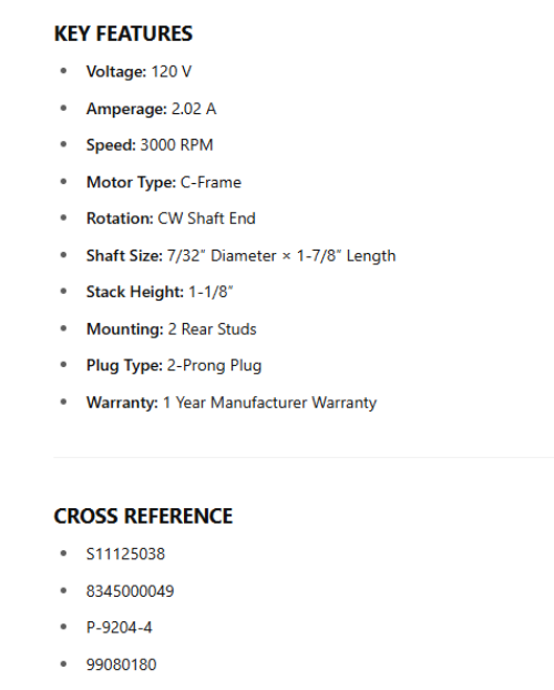 99-08-0180, OEM Replacement , 120V, 3000 RPM, C-FRAME, CWSE