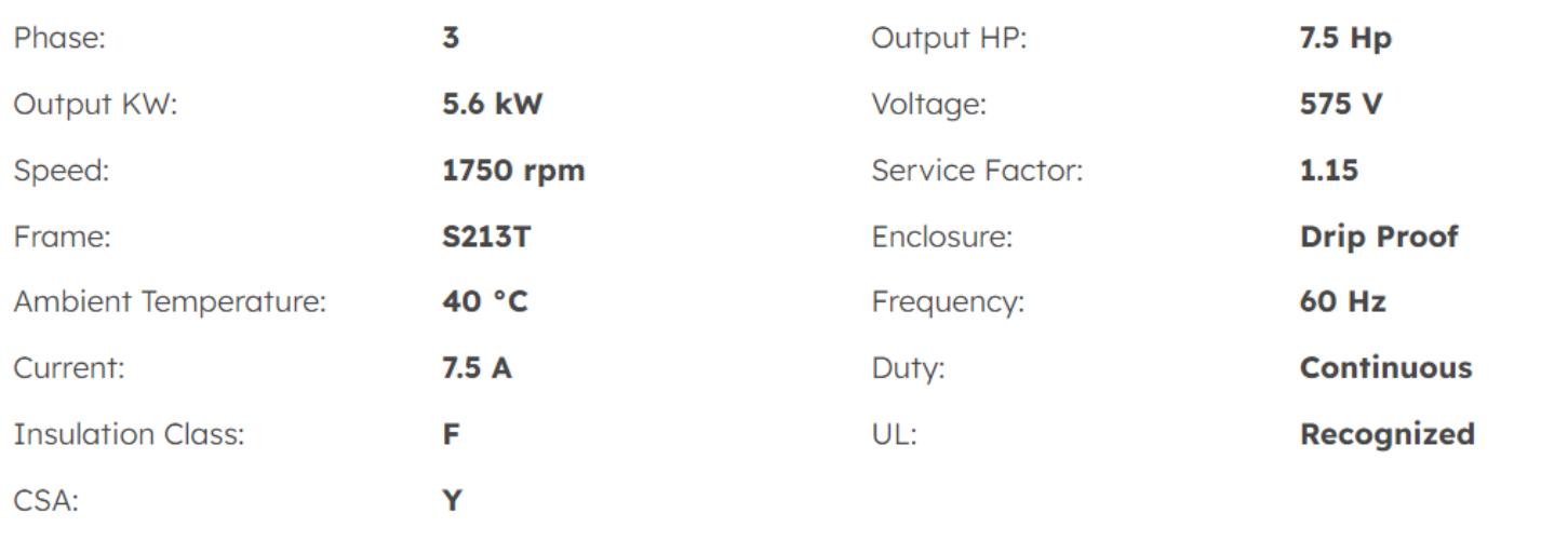 Output HP | 7.5 Hp |