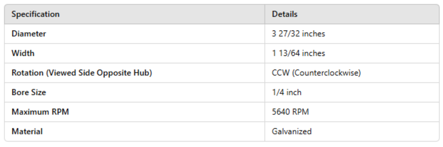 1-6051, Single Inlet Blower Wheel, 1 13/64 W, CCW, 5640RPM