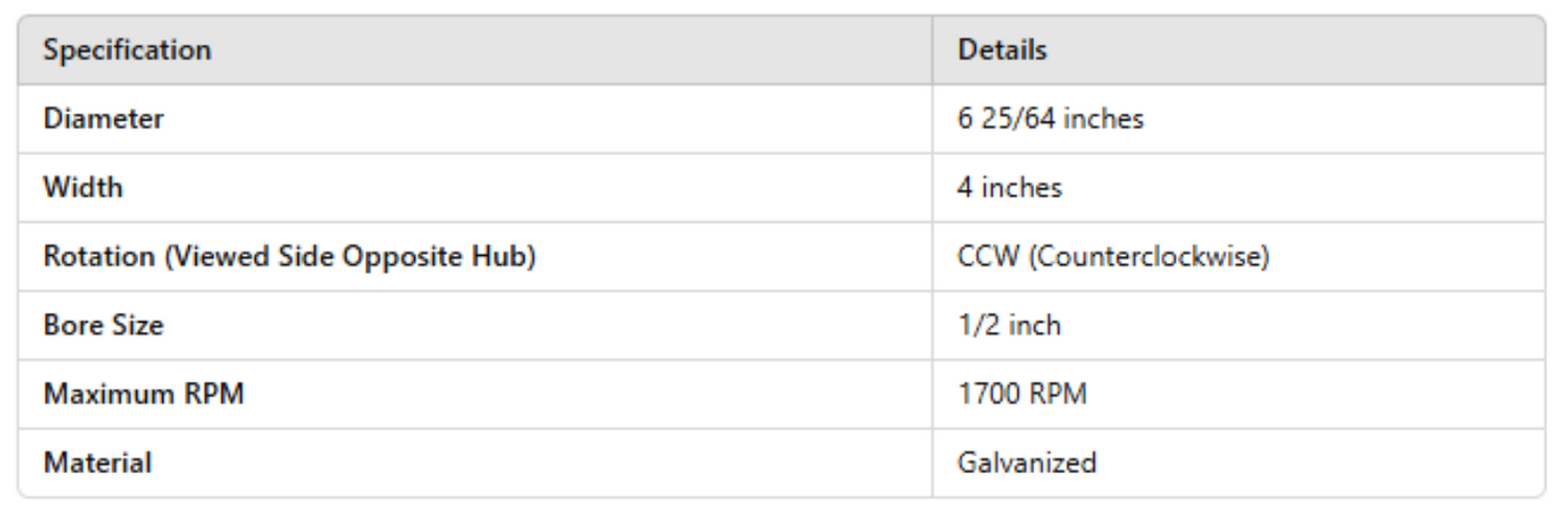 1-6064, Single Inlet Blower Wheel, 4 W, CCW, 1700 RPM