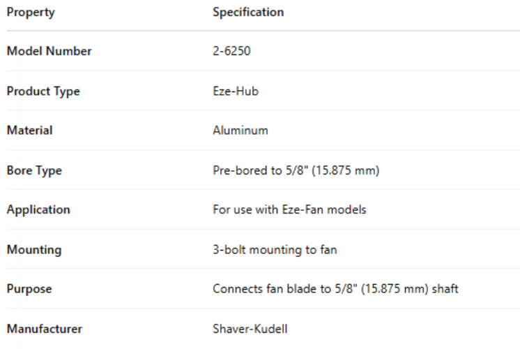 Purpose Connects fan blade to 5/8" (15.875 mm) shaft