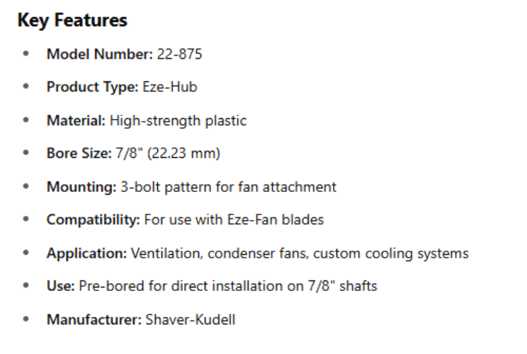 22-875, Plastic Eze-Hub - Bored 7/8" (22.23 mm)