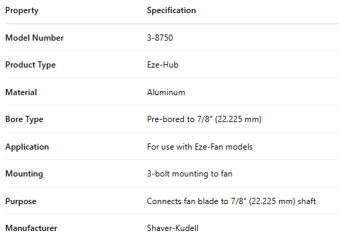 3-8750, Aluminum Eze-Hub - Bored 7/8" ( 22.225 mm ) is backordered and will ship as soon as it is back in stock.