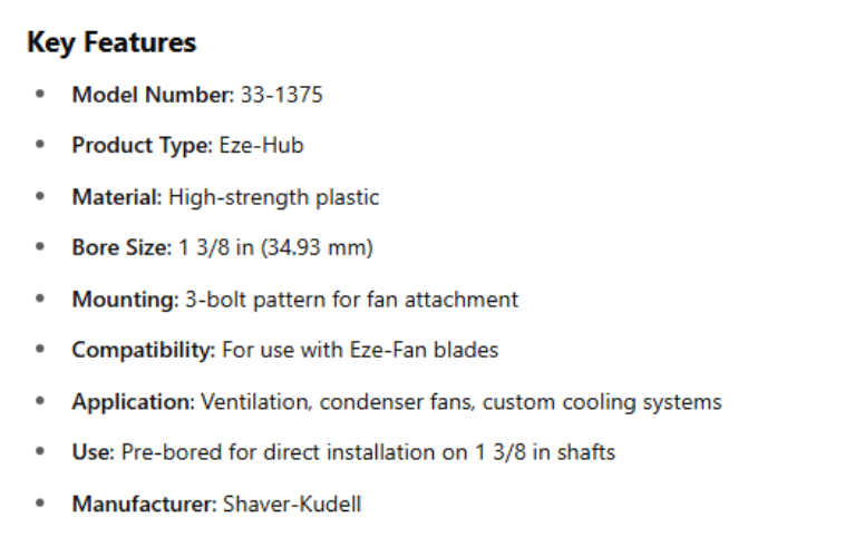 Each size and style of fan will fit many interchangeable bore sizes. This will keep your inventory to a minimum.