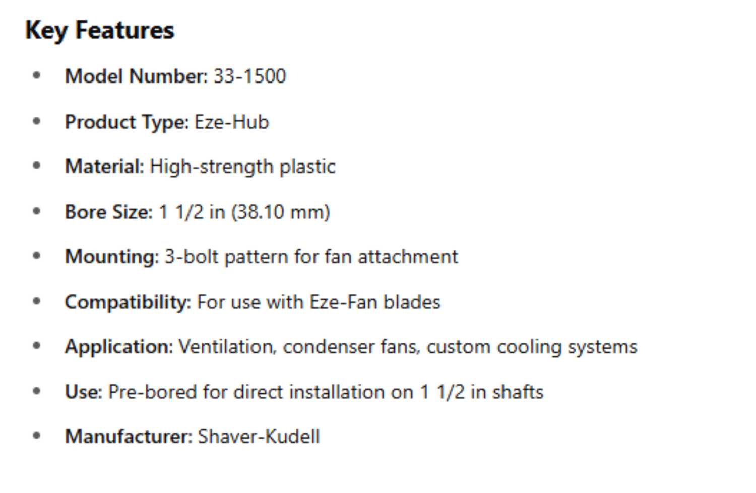 • Mounting: 3-bolt pattern for fan attachment