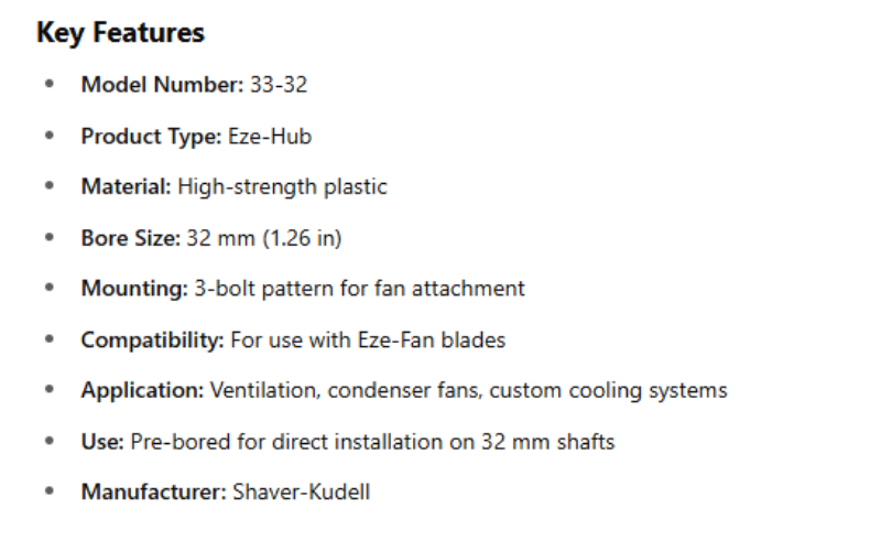 Each size and style of fan will fit many interchangeable bore sizes. This will keep your inventory to a minimum.