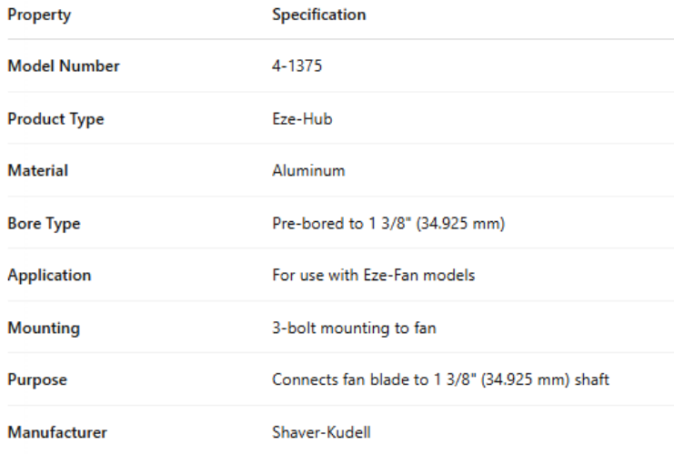 4-1375, Aluminum Eze-Hub - Bored 1 3/8" ( 34.925 mm ) is backordered and will ship as soon as it is back in stock.