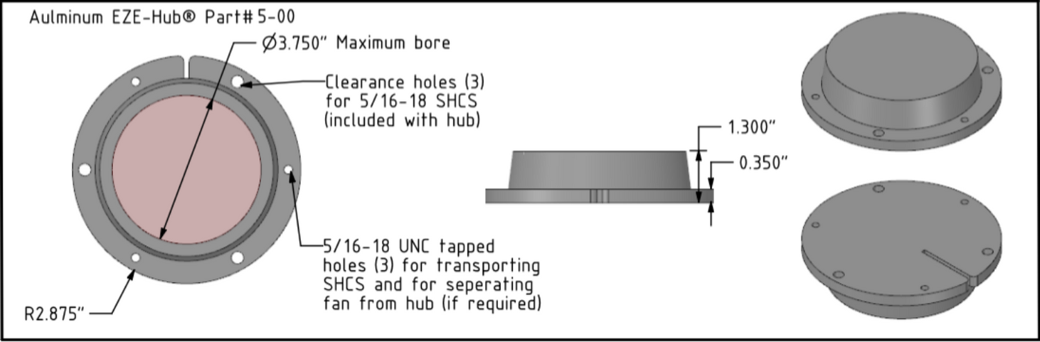 All our fans are made to be assembled using the Eze-Hub®. These hubs are taper locked upon assembly and allow for installation and removal without any damage to the fan or shaft. The hubs can be bought separately and are available in a variety of metric or standard bore sizes to satisfy your customers needs.