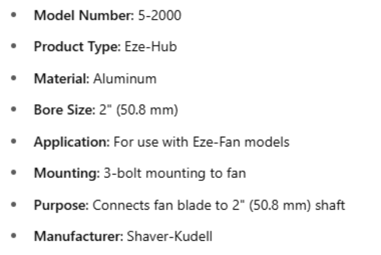 Purpose: Connects fan blade to 2" (50.8 mm) shaft
