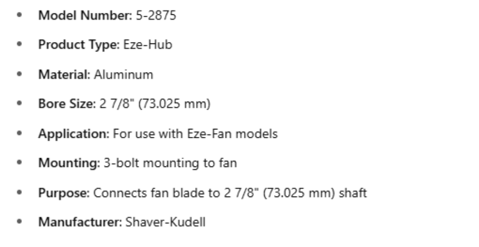 • Purpose: Connects fan blade to 2 7/8" (73.025 mm) shaft
