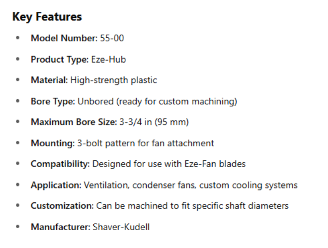 55-00, Plastic Eze-Hub - Unbored is backordered and will ship as soon as it is back in stock.