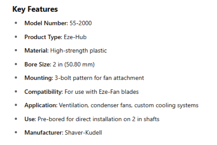 • Mounting: 3-bolt pattern for fan attachment