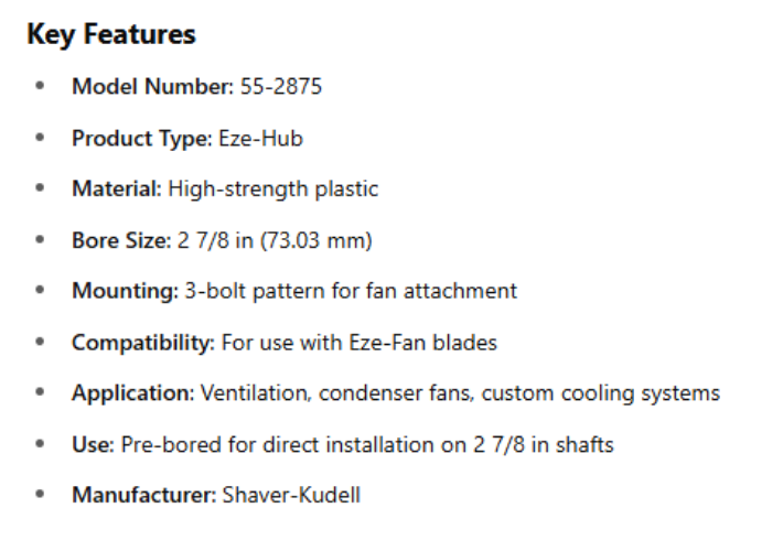 55-2875, Plastic Eze-Hub - Bored 2 7/8" (73.03 mm) is backordered and will ship as soon as it is back in stock.