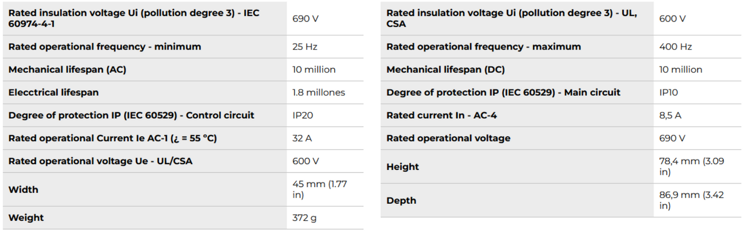 • Rated current (AC-3 ≤ 440V): 18A