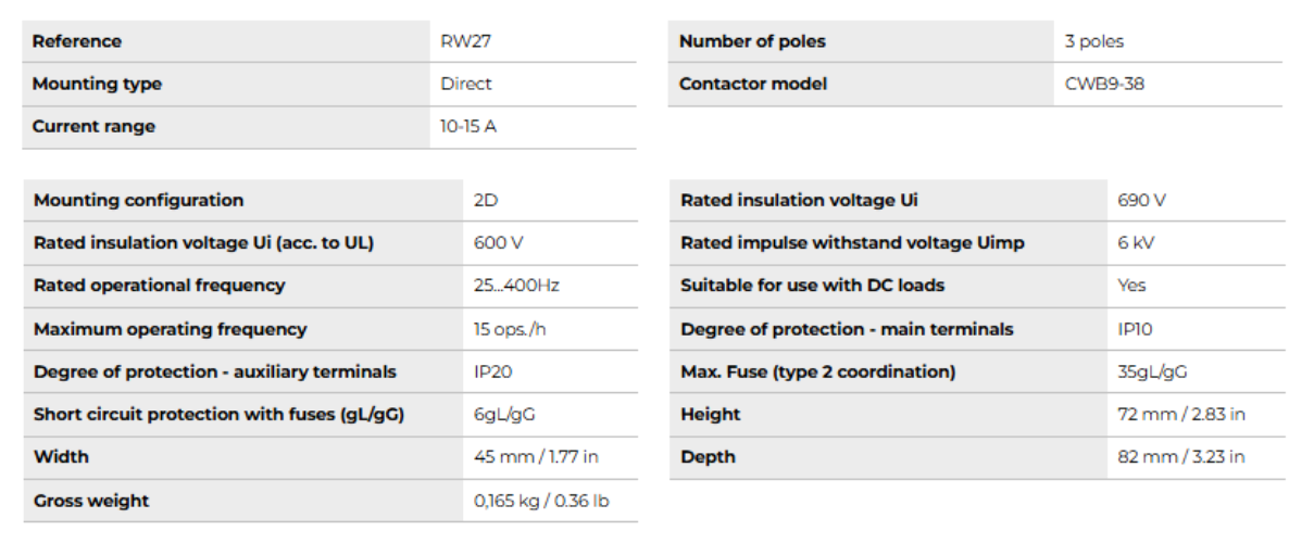 • Contactor Model: CWB9-38