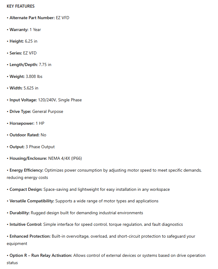 Alternate Part Number: EZ VFD