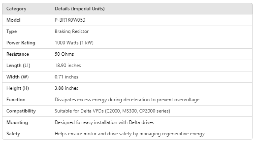 P-BR1K0W050, Braking Resistor 50 OHM 1000W