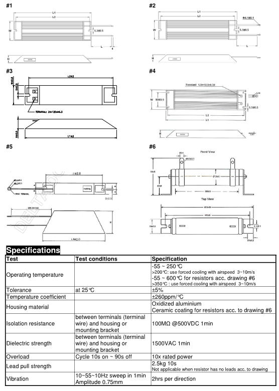 P-BR1K5W005, BRAKING RESISTOR 5 OHM 1500W