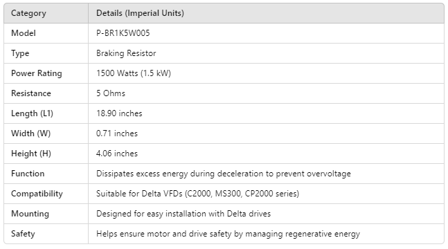 P-BR1K5W005, Braking Resistor 5 OHM 1500W