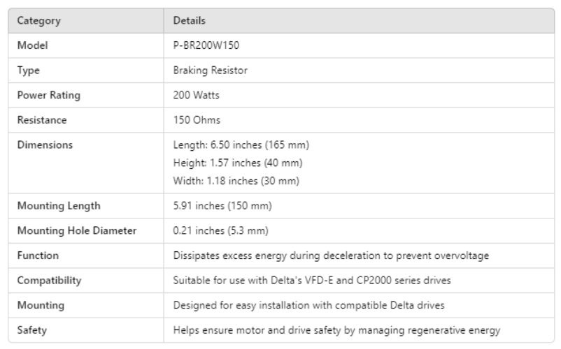 P-BR200W150, Braking Resistor 150 OHM 200W