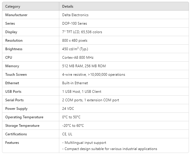 P-DOP-107WV, Dop-100 Series Hmi 7 Touch Screen, High Resolution, With Ethernet Port is backordered and will ship as soon as it is back in stock.