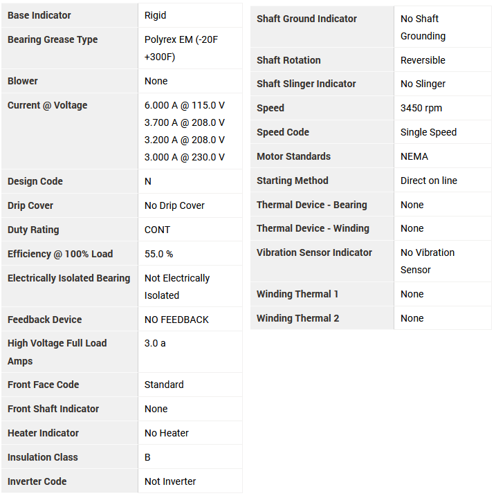 Special Features Locked Bearing, No Drip Cover, No Heater, No Feedback, No Inverter Duty