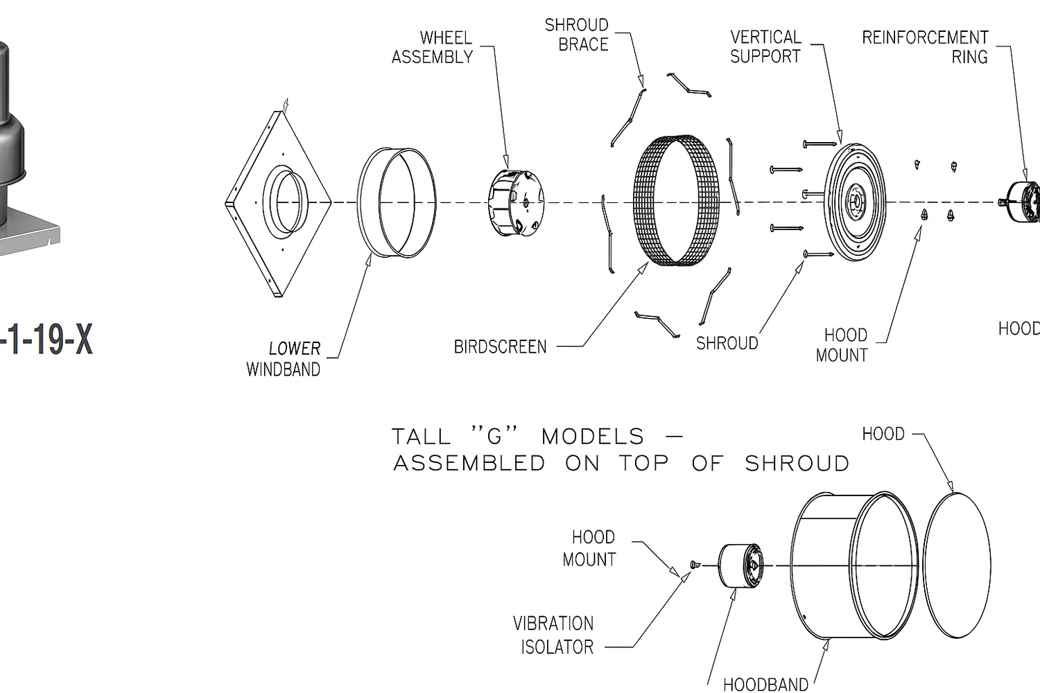 Rooftop fans, air exhaust units, C-face variable-speed assemblies, and other commercial ventilation systems.