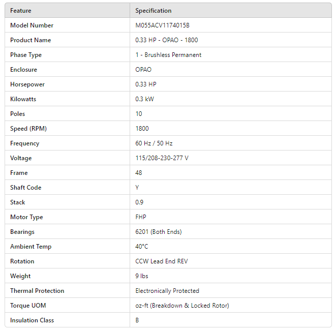 8420PS, Us Motors ECM PERFECTSPEED , 0.33Hp - OPAO - 1800 RPM, 115/208-230-277V , 50&60Hz