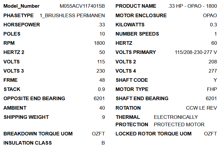 8420PS, ECM PERFECTSPEED , 0.33Hp - OPAO - 1800 RPM, 115/208-230-277V , 50&60Hz
