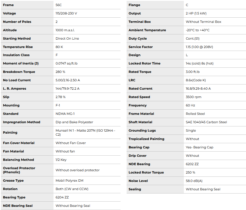 KO002102W01DOE, Rolled Steel 2Hp 3500 Rpm 2P 56C 1Ph 115/208-230 V 60 Hz IC01 - ODP - Footless