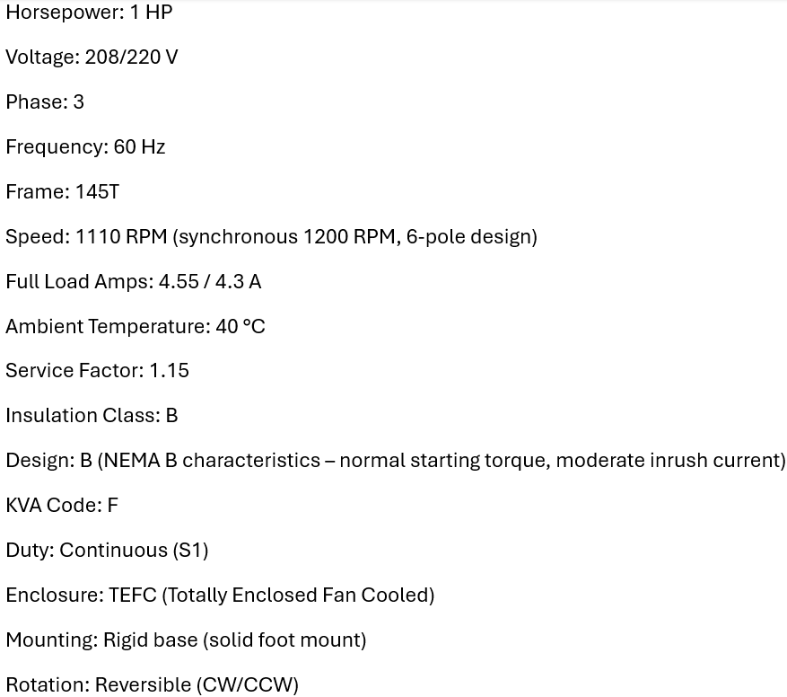 • Enclosure: TEFC (Totally Enclosed Fan Cooled)