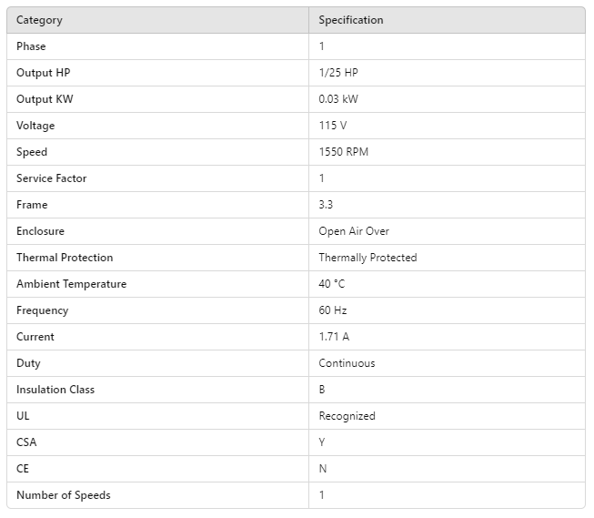 Output HP | 1/25 HP |