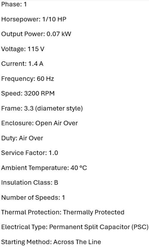 • Electrical Type: Permanent Split Capacitor (PSC)