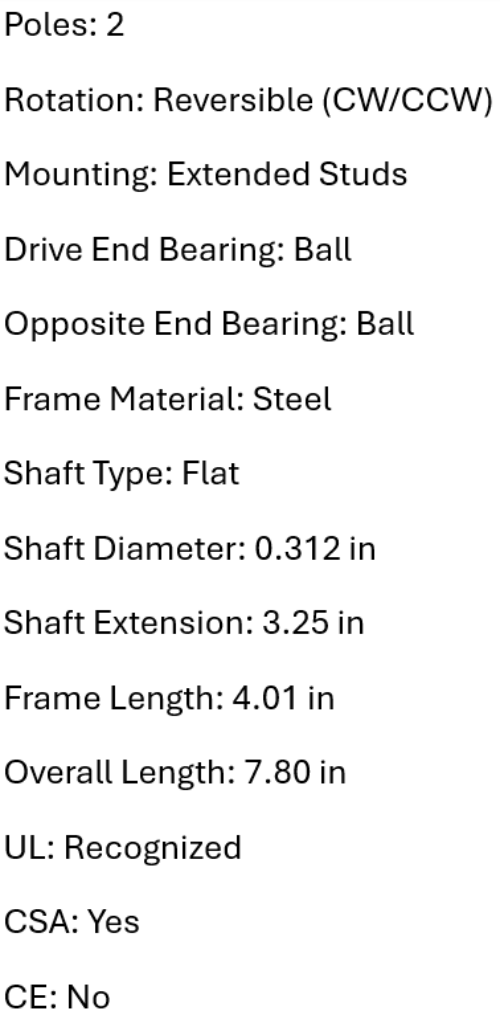 • Output Power: 1/10 HP (0.07 kW)