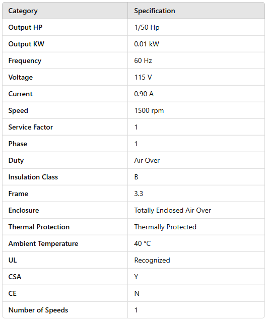 D602, Fasco , 1/50Hp, 1550 Rpm, 115 Volts, Frame:3.3,TEAO is backordered and will ship as soon as it is back in stock.