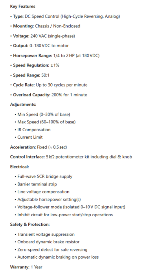 Type: DC Speed Control (High‑Cycle Reversing, Analog)