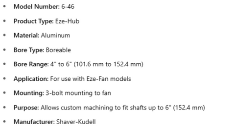 6-46, Aluminum Eze-Hub - Boreable 4" TO 6"( 101.6 mm to 152.4 mm ) is backordered and will ship as soon as it is back in stock.