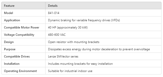 841-014, LENZE 40Hp Open Dynamic Bracking Resistor With Mounting Brackets 480/600VAC