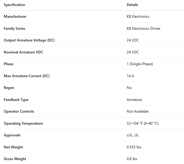 Our stock of KB Electronic accessories features a range of control periphery products from switch kits and fuse kits to replacement potentiometers and AC line filters. These products provide more functions and better performance to your KB Electronics AC and DC drives.