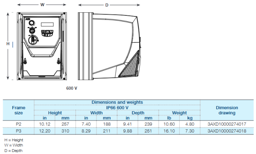 ACS255-03U-02A1-6+B068, ABB ACS255 1Hp 2.1A 500/600V IP66 Nema 4X